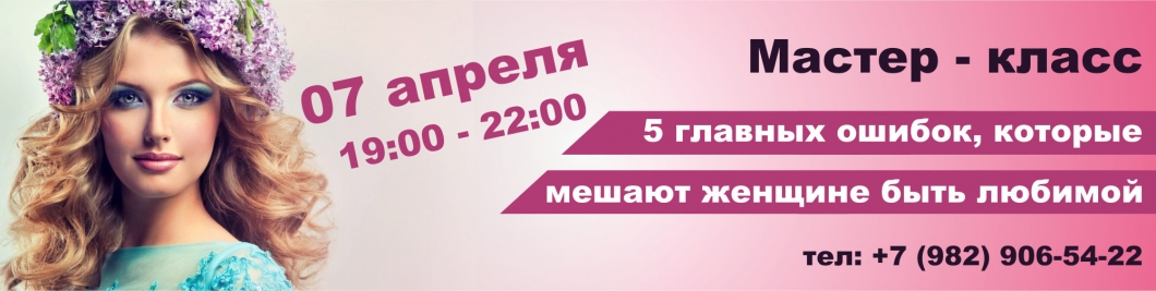 7 апреля в конференц-зале "Академический" пройдет мастер-класс для женщин "5 основных ошибок, которые мешают женщине быть любимой".