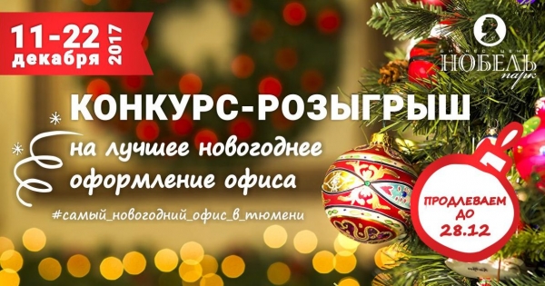 С сегодняшнего дня и до 28 декабря 2017 года в аккаунте "Нобель групп" (@nobeltmn) в социальной сети Instagram стартует конкурс-розыгрыш на лучшее новогоднее оформление офиса.