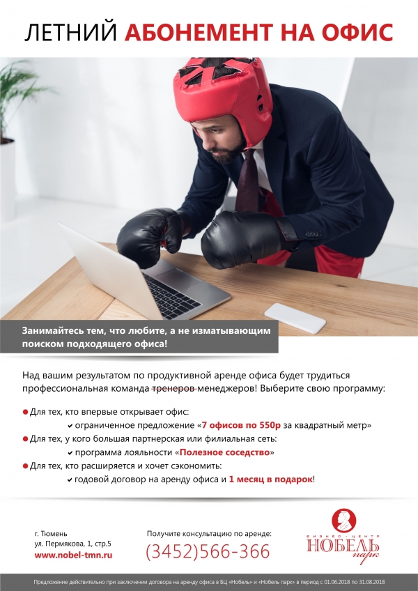 Предложение действительно при заключении договора на аренду офиса в период с 01.06.2018 до 31.08.2018