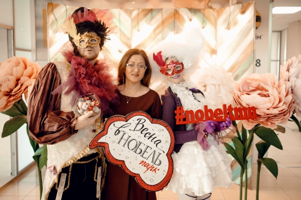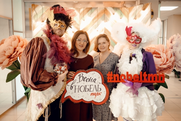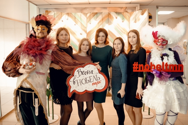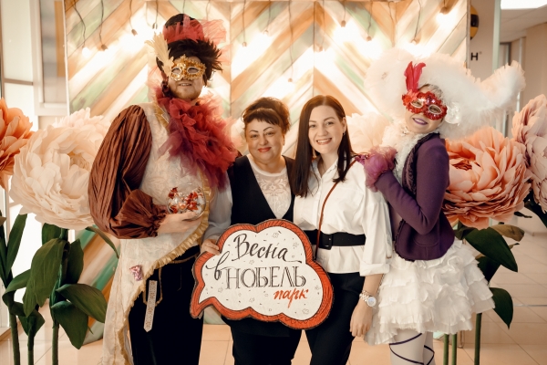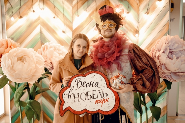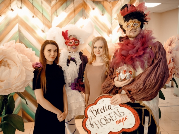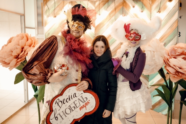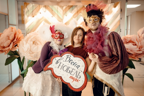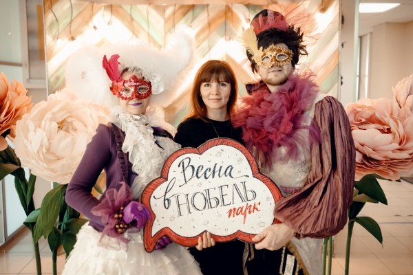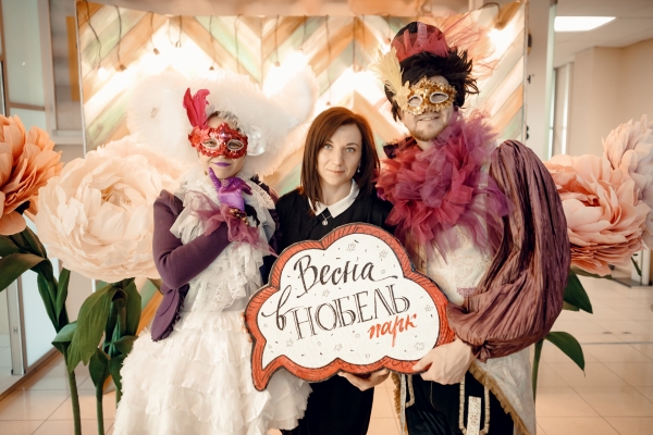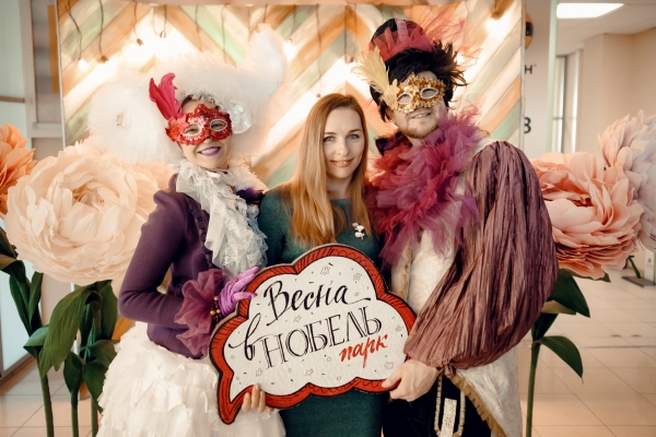 Анимационная группа иммерсивного театра "Пижама" поздравляла всех дам, работающих в бизнес-центре «Нобель парк» с 8 марта. Все желающие могли сделать красивые фото в весенней фотозоне.